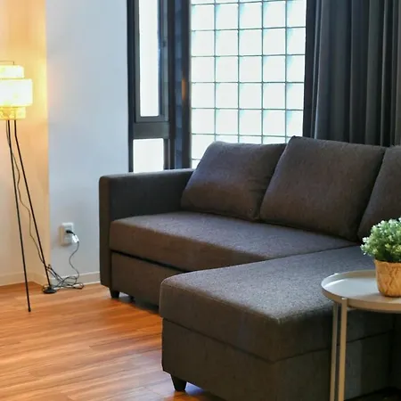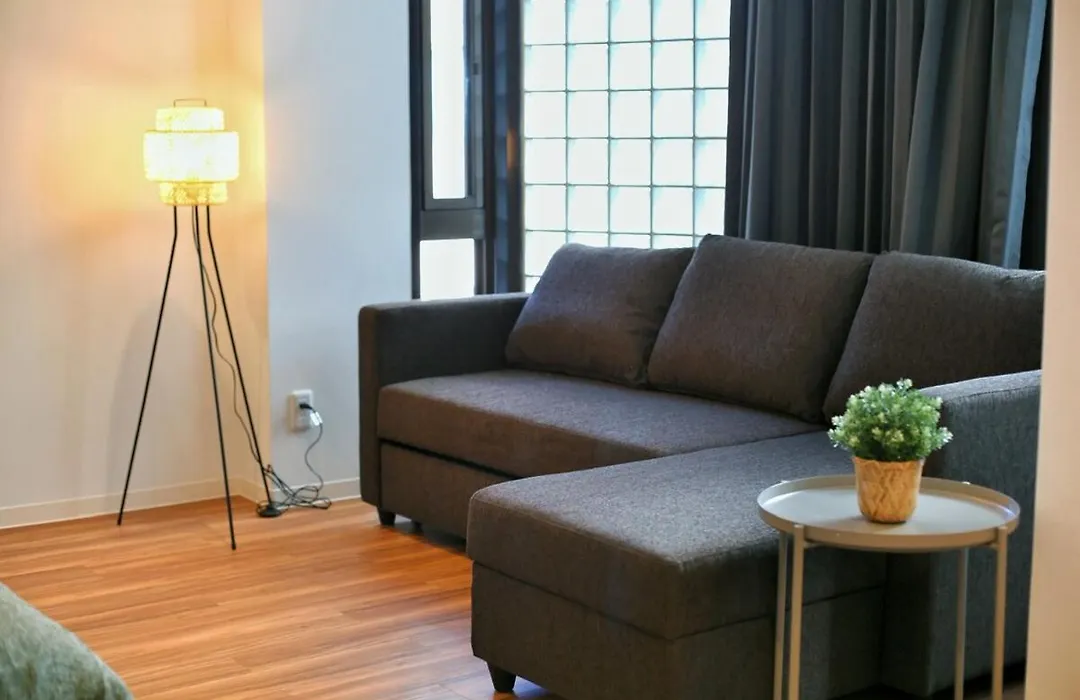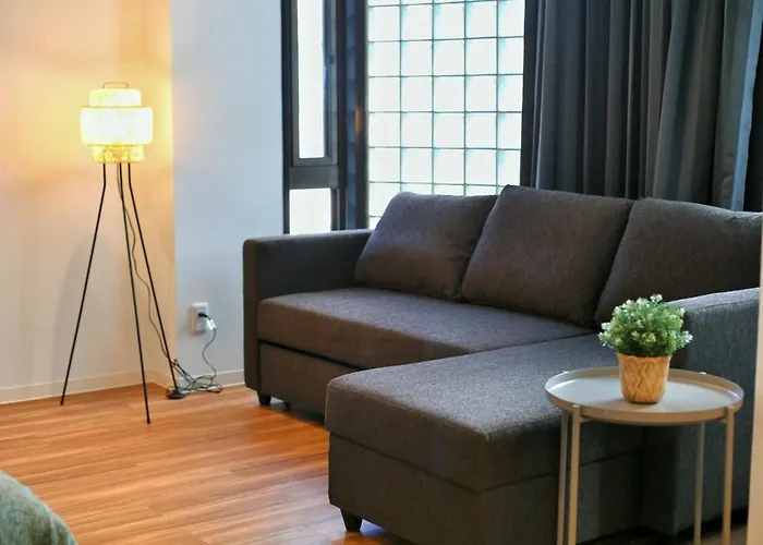 The apartment includes a balcony and a fully equipped kitchen with air conditioning for utmost comfort.